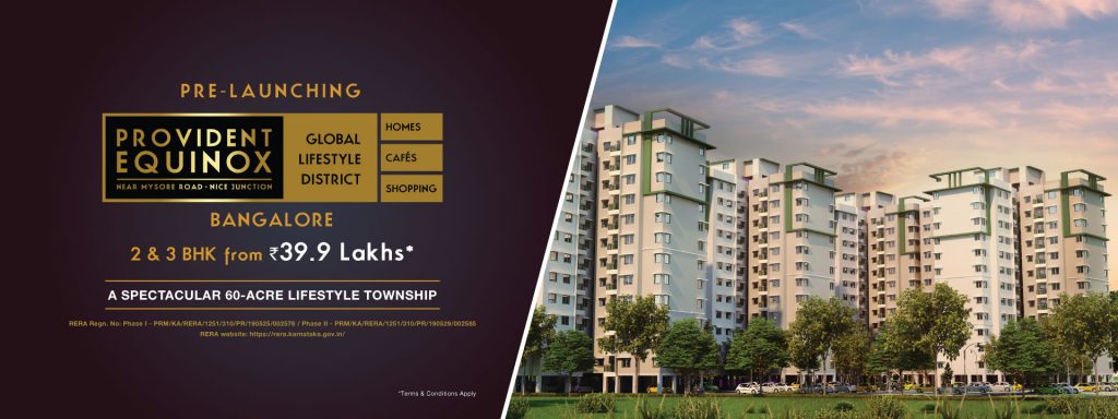 3BHk apartments for sale near Mysore road are also preferred as the area has unparalleled connectivity. The presence of metro, proximity to NICE road and outer ring road offers excellent connectivity. The presence of affordable housing projects has given a new impetus to the area. Once such affordable housing project that has beautiful 3 BHK apartments for sale in Mysore road is Provident Equinox by Provident Housing. A Subsidiary of Purvankara, this builder is known for its build quality and reliability. Provident specializes in creating world-class apartments with judicious usage of space and superior quality with an affordable price tag.